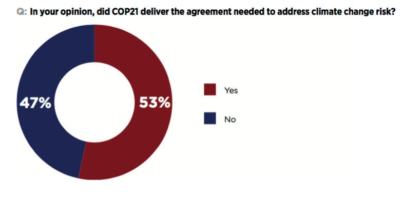 Sólo el 53% de los encuestados considera que la COP21 terminó realmente con el acuerdo que se necesitaba para hacer frente a los riesgos del cambio climático.