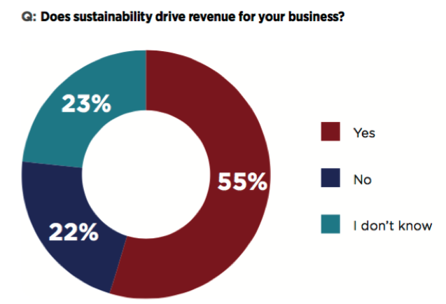 El 55% de los ejecutivos encuestados afirmaron que la sostenibilidad está impulsando los ingresos para su negocio.