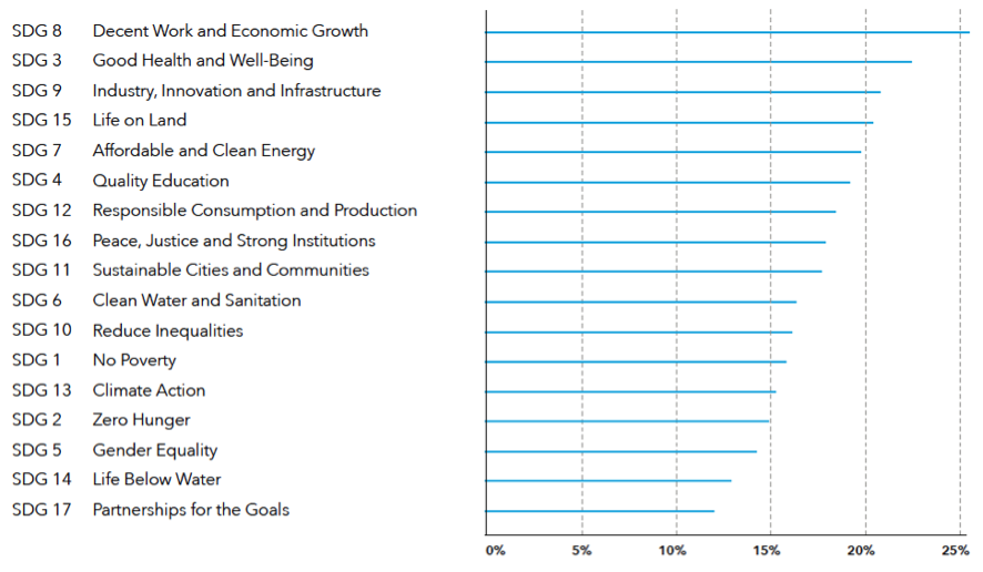A continuación podemos ver en el gráfico el resto de ODS y los porcentajes de encuestados que se decantan por cada uno de ellos.