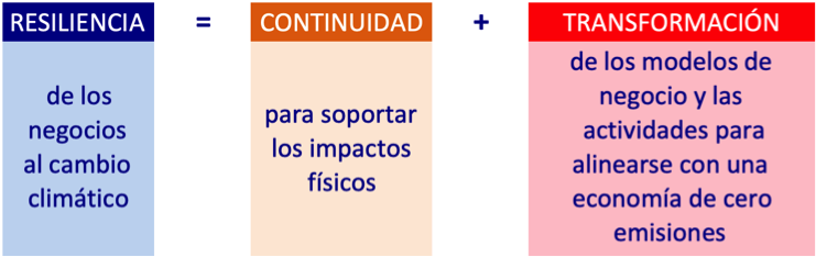 Aspectos para conseguir la resiliencia empresarial al cambio climático. Fuente: Traducción de “Thriving through the transformation”.