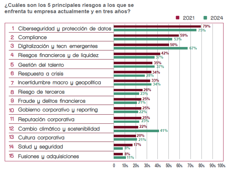 Ciberseguridad, compliance y digitalización son los tres principales riesgos para las empresas.