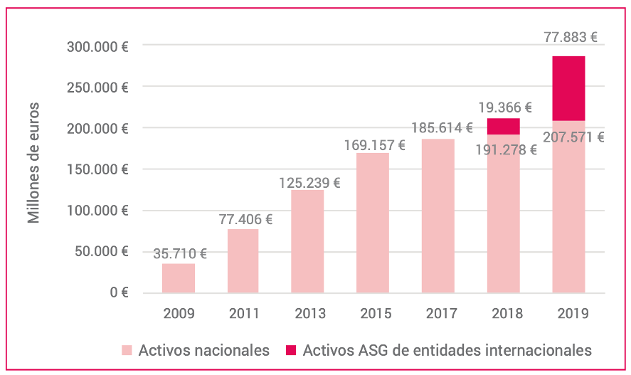Las entidades consultadas declaran tener un total de activos gestionados con algún tipo de estrategia o criterio ambiental, social y de gobernanza ASG, de 285.454 millones de euros, lo que supone un incremento del 36% con respecto al año pasado.